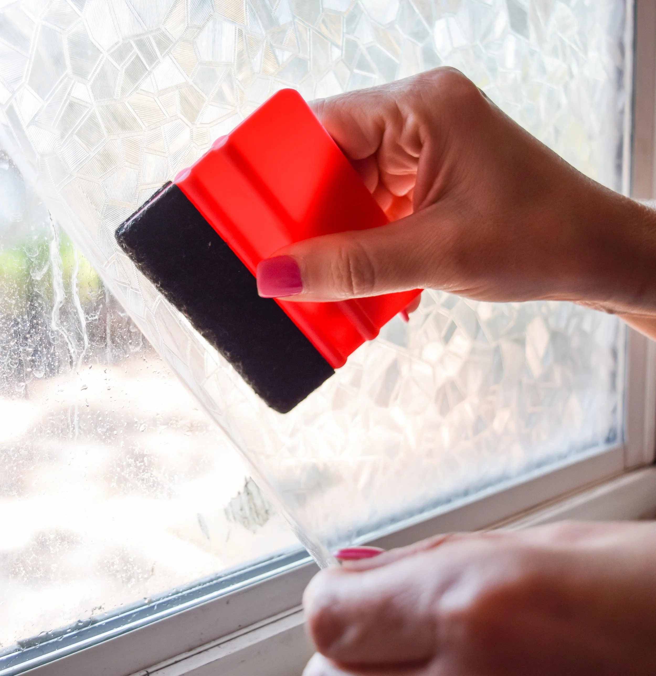 Frosted splinter mosaic pattern self-adhesive window film. Our collection of d-c-fix® static cling window films have been developed using innovative static cling technology to make application so quick and easy, you’ll be amazed. The film adheres to the glass surface using water, which later dries out leaving a flawless finish with no air bubbles. Whether you’re looking for some privacy for an overlooked window or would just like to add some decoration to plain glass, d-c-fix® static films offer a wide range of designs in varying sized rolls to fit any area of glass. d-c-fix® static window films can be peeled off leaving no residue and can be re-used.