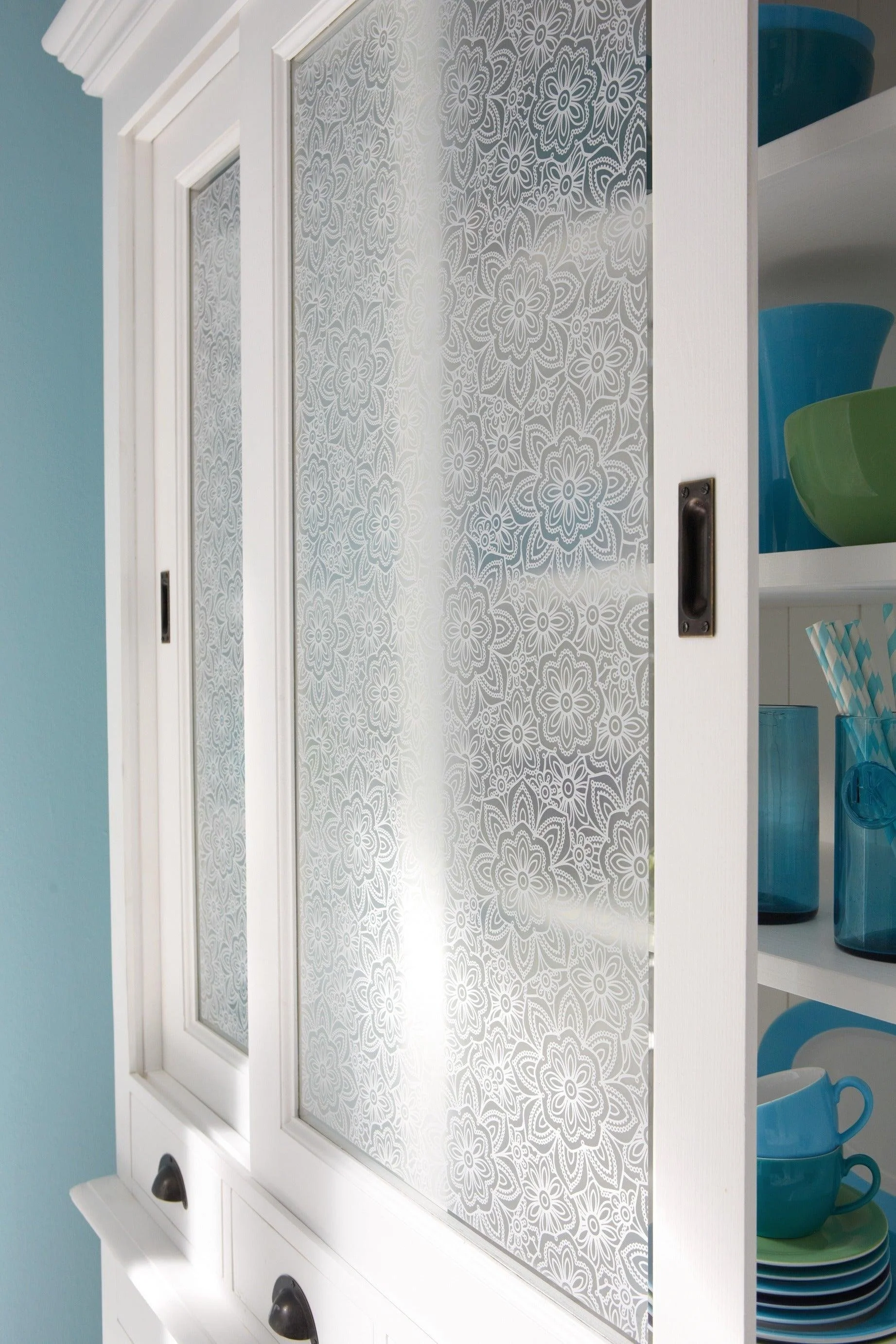 Candice/Lace floral static cling window film updates your windows with a translucent floral pattern on a transparent surface. It allows light to penetrate while keeping your privacy. Our collection of d-c-fix® static cling window films have been developed using innovative static cling technology to make application so quick and easy, you’ll be amazed. The film adheres to the glass surface using water, which later dries out leaving a flawless finish with no air bubbles. Whether you’re looking for some privacy for an overlooked window or would just like to add some decoration to plain glass, d-c-fix® static films offer a wide range of designs in varying sized rolls to fit any area of glass. d-c-fix® static window films can be peeled off leaving no residue and can be re-used.
